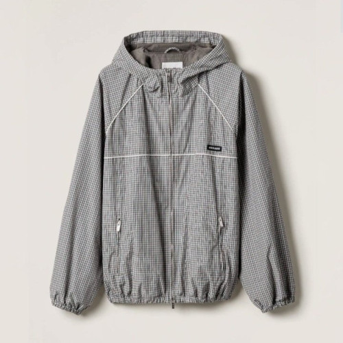 • MIUMIU 미우미우 체크 테크니컬 패브릭 봄버 자켓