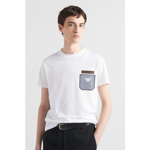 PRADA 프라다 레더 포켓 디테일 코튼 숏 슬리브 티셔츠 2COLOR > 반팔